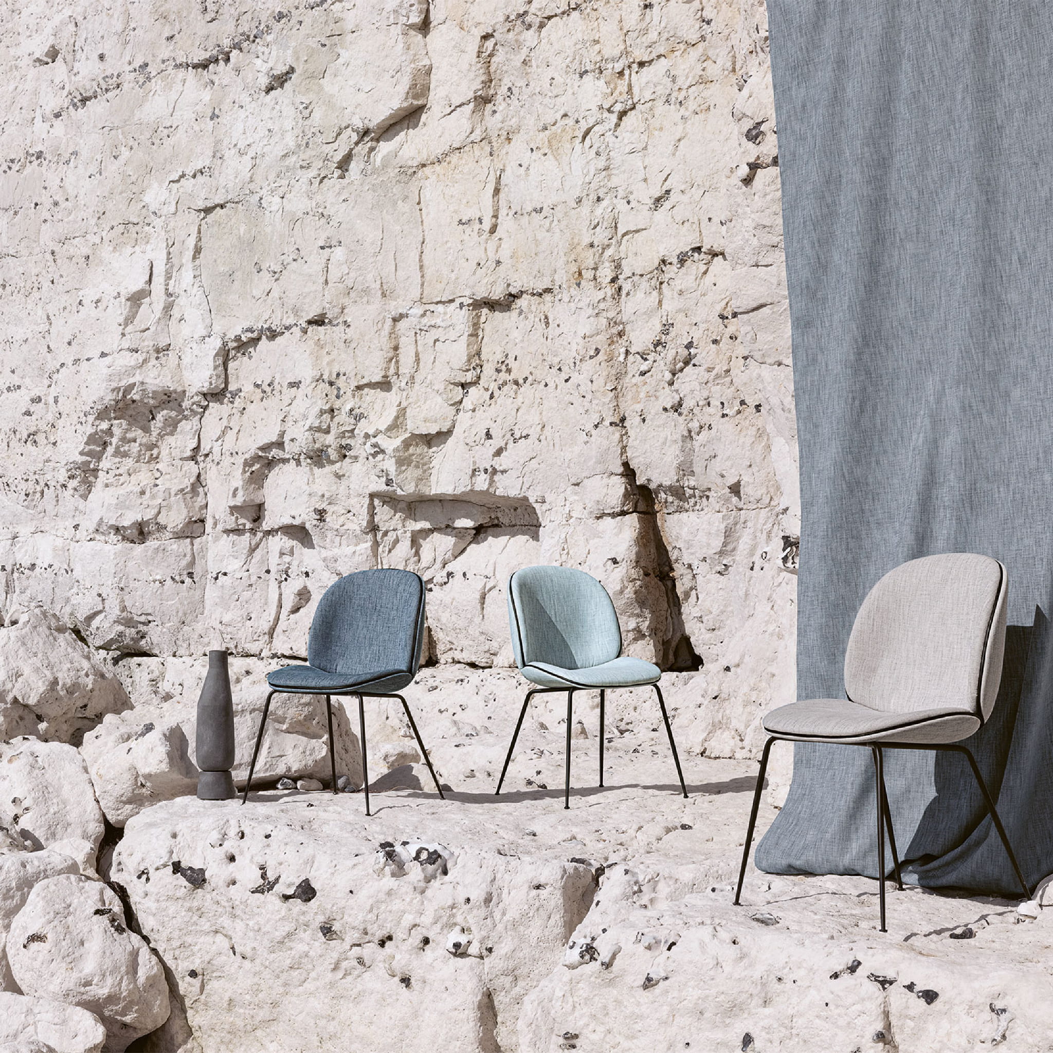 Tkanina kirkbydesign 02 Wave stawia na ekologię. Tkanina wykonana jest w 100% z przetworzonych plastikowych butelek, co czyni ją przyjazną środowisku. Delikatny efekt falisty i miękka powierzchnia sprawiają, że Wave wygląda i w dotyku przypomina naturalny materiał. Nowoczesna paleta stonowanych kolorów pozwala na wykorzystanie tkaniny w różnych aranżacjach wnętrz.