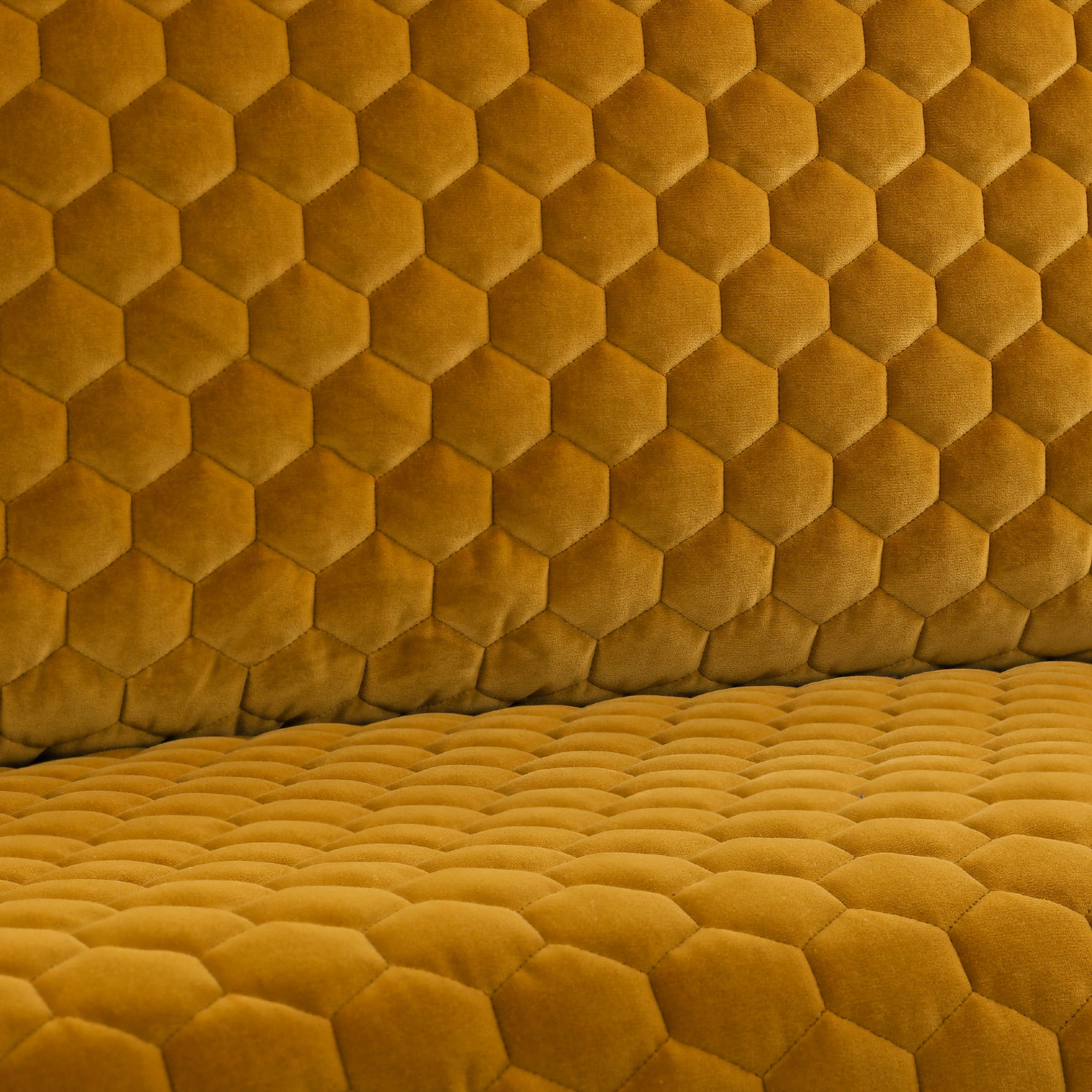 Tkanina kirkbydesign 92 Cloud II FR to trójwymiarowy welur o graficznej, sześciokątnej strukturze, który został dodatkowo upiększony poprzez potrójne pikowanie, nadając mu luksusowy charakter.